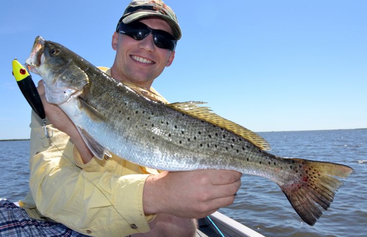 Dularge is known for double-rigging lures and anglers catching trout two at a time, but that’s rarely the case when fishing the marshes this month, the guide explained.