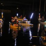 When the horn blows, the light show becomes fluid as the parade of pedalers and paddlers make their way in all directions. With no motor noise, the kayakers are able to talk and joke along the way.