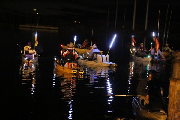 Limited to the first 125 anglers, the event sold out quickly. It’s quite a sight to see all those kayaks with their white lights bobbing in the darkness while waiting on the start.