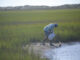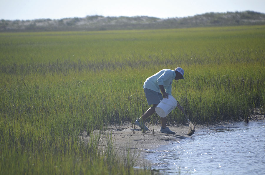 Apr26-DSC_0130 Capt. Jeff Cronk of Fish’n 4 Life Charters catches fiddler crabs for sheepshead bait while fishing in the Bogue Sound area near Swansboro, N.C.