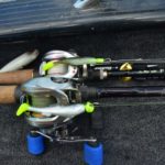 Naquin throws the old standby H&H Cocahoe Minnow in salt & pepper with a chartreuse tail, or black with a chartreuse tail.