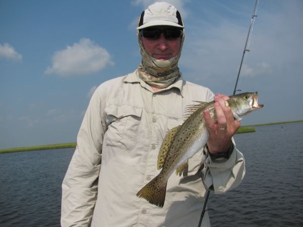 • that, in fact, for the past two weekends we’d been mopping up on shallow-water reds, along with school specks and a few sheepshead in the upper marshes of the Port-Sulphur/Empire area — really the only marsh worthy of the name remaining in that area.