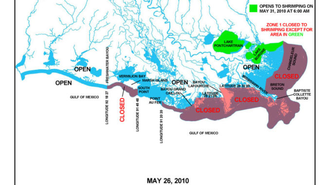 The waters from Marsh Island’s South Point at 91 degrees 45 minutes 48 seconds west longitude west to the eastern shore of Freshwater Bayou at 92 degrees 18 minutes 27 seconds west longitude were closed after confirmed reports of oil, the LDWF reported.