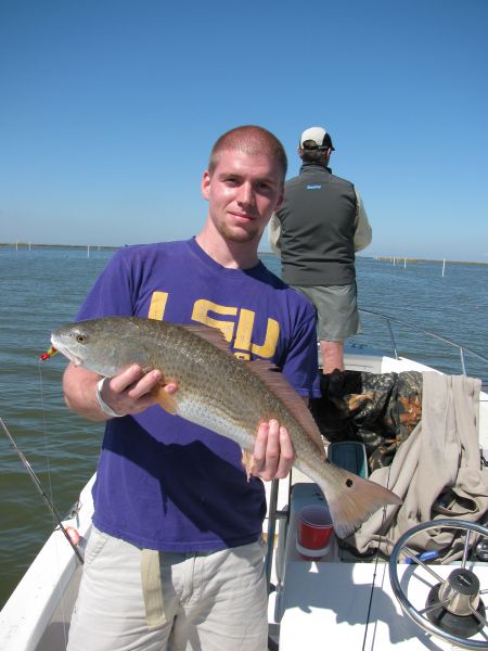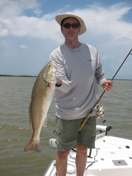 Indeed, many of the reds caught in the rapidly eroding marshes just west and across the river from here in the Empire-Port Sulphur area, start tapering from the head. Upon cleaning them, we also note the absence of the white fatty area on the upper part of the fillet just below the dorsal fin. Obviously, nutrition is better for them in the Bayou Lamoque area east of the river.