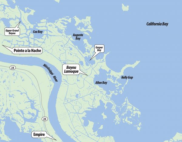 Redfish prowl the entire Louisiana coastline, the waters of Bayou Lamoque and Cox Bay near Empire provide almost virgin territory.