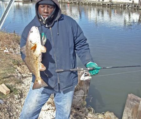 Arctic blast pushes reds into deep water, making them accessible to bank fishermen.