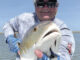 Mike Frenette, a guide and professional redfish angler, holds a bull redfish he caught. (Photo courtesy Mike Frenette)