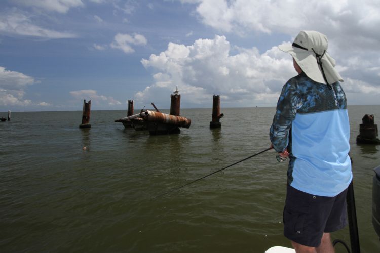 Indeed, when inshore waters feel like a bathtub, turn your attention to the rigs, and the various pumping stations and support structures scattered along the Delta’s perimeter.