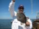 In addition to trout and reds, those light jigs will also tempt some pretty hefty rig denizens. If I wasn’t already convinced of Montet’s mettle, I certainly tipped my hat to the young man when he did battle with a pair of 15-pounders — one black drum and then a big, nasty jack crevalle — that took a liking to his Z-Man Trout Trick.