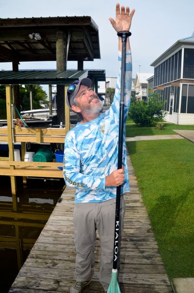An anchor also is important. Simply a 3- to 4-foot length of PVC pipe with a rubber grip on one end, it is staubed in the mud while fighting a strong fish like a redfish that will tow the paddle board all over.