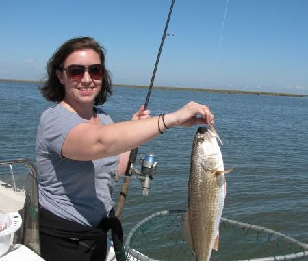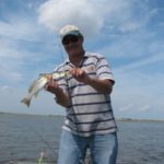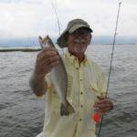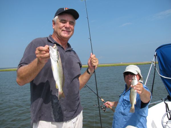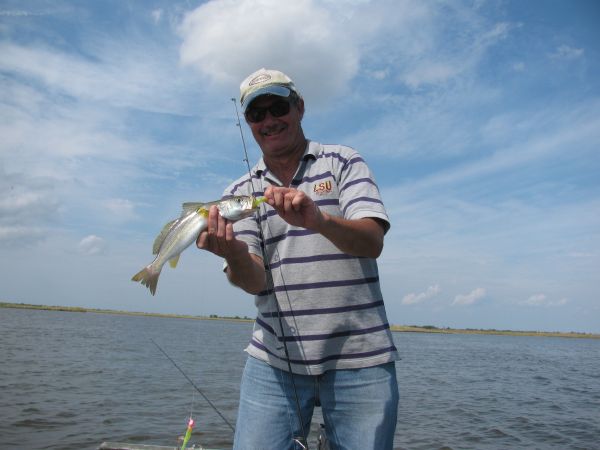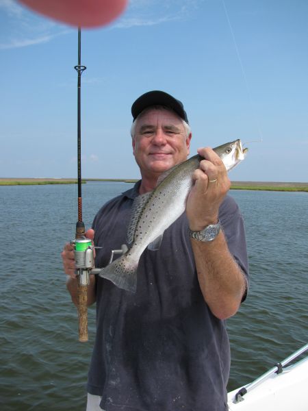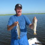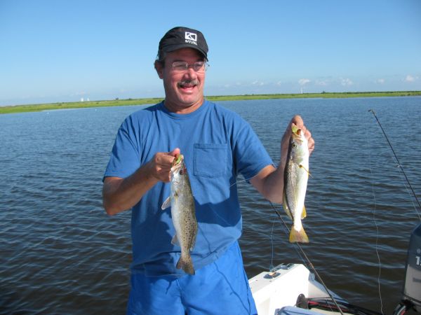 “Another double right chere!” And it was, but the speck dropped off as I swung them aboard, leaving only the white trout, which was fine with me: They’re every bit as delectable as a school speck, with (amazingly) a lower incidence of those unsightly spaghetti worms.