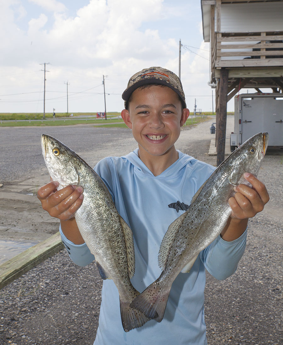 Last summer, my son-in-law, one of his co-workers, my 9-year-old grandson and I made a trip to Topwater Charters to fish for speckled trout. The weather wasn’t being very cooperative in the days leading up to the trip, and the fish hadn’t been super cranked up, but we decided to make the most of it anyway. The plan was to fish Sunday afternoon and follow up on Monday with a morning trip.