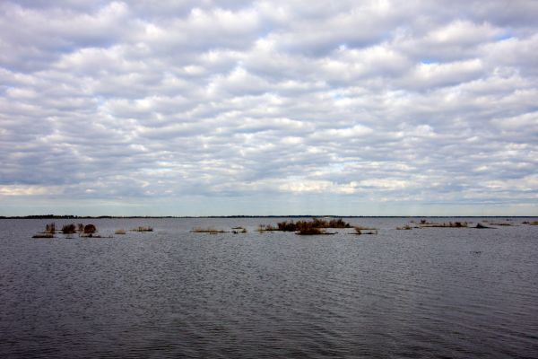 Flotant dots the watery landscape of the southeast corner of The Pen, where perhaps a quarter mile of shoreline broke off from what used to be a defined, straight line.