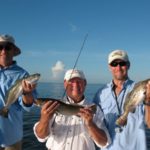 Cady got us into a position where we could cast without interfering with the neighboring boats, and the guys following us anchored a good bit off from us. We tossed live shrimp about 2 to 3 feet under a cork, and we immediately got some hook-ups.