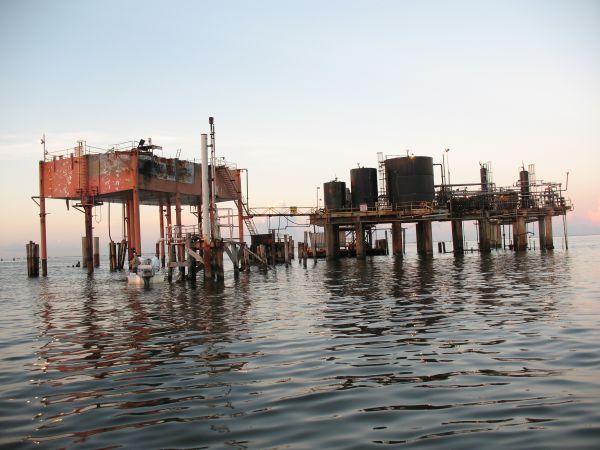 Not much is left of the old Black Tanks structure, once a bonanza for speckled trout anglers. But some pilings and a chunk of barge remain, and those remnants still attract some trout.