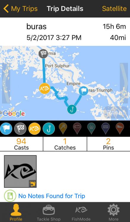 Anglr (yes, that is how you spell it) is touted as being the world’s first-ever connected technology platform for fishing, and includes the world’s first rod-mounted catch (and cast) detection device. The device, called the Anglr Tracker, is connected to your smartphone via Bluetooth and feeds the Anglr app real time data all day long. It’s meant to be connected to your rod via supplied O-rings, but cable ties work nicely, too. It automatically records casts, weather conditions and your position and you can manually enter things such as your target species, and when and where you catch a fish. This is pretty cool stuff to go back and look at when piecing together the day’s pattern or planning for another trip. Looking at the snapshot overview the trout and redfish trip I made is pretty cool, but would be made cooler if I had remembered to record all the fish catches. I was fishing out of Buras with a Capt. Lloyd Landry and we smashed the trout, despite the screenshot above saying there was only one caught. And I forgot to turn it off; we didn’t fish for 15 hours.