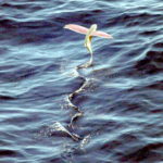 Four-winged species are larger (up to 18 inches long) than two-winged species and can glide longer, at least a quarter of a mile, although most “flights” are shorter. At the end of the flight, the fish can either hit the water or glide down to the surface so that the lower lobe of the tail can be used to scull the fish up to speeds enough for another flight.