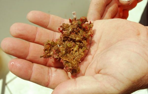 “It has a lot of sponge on it, and has gorgonians,” Pellegrin said, adding that pieces of it often come up on his hooks. A saltwater aquarium enthusiast since 1978, he knows a lot about live rock.