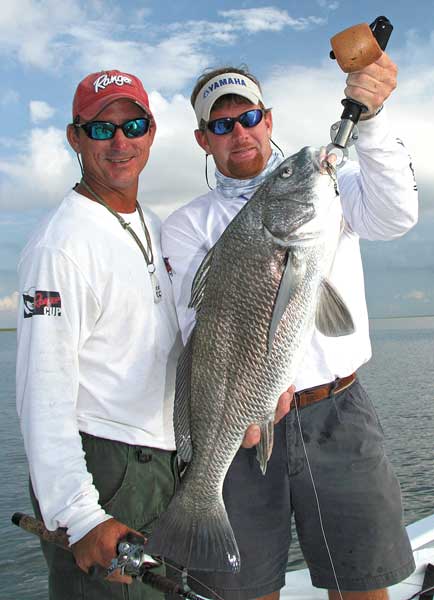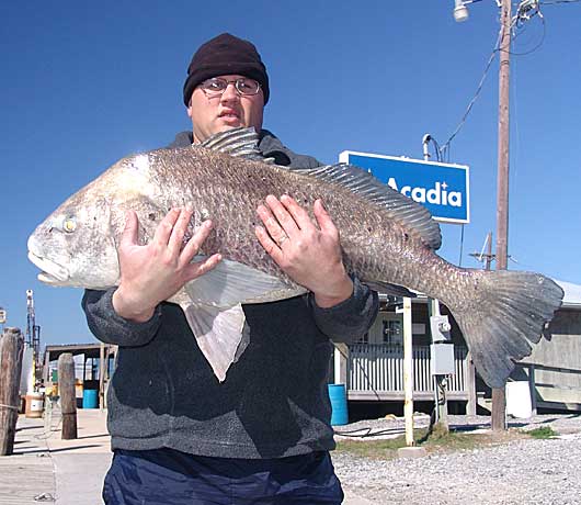 Some of the biggest black drum I’ve seen in Louisiana waters came from a most inconspicuous setting — the fuel docks of Belle Pass Marina at Port Fourchon. It was a blustery February morning, and rough weather had blown out all the yellowfin tuna trips.