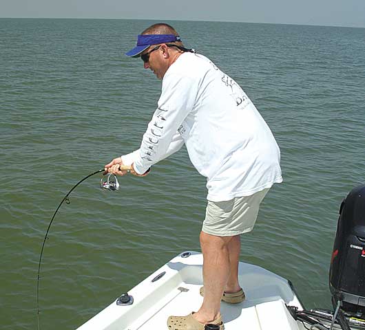 Rock and oyster reefs in Sabine Lake offered good redfish potential for a tactic known as “dredging.” Basically, we set up a drift across the structures in about 4 to 6 feet and tightlined jigs and swimbaits. Deploying a sea anchor kept our drift at the right pace while holding the boat broadside to the structure so we could drag multiple lines without tangling.