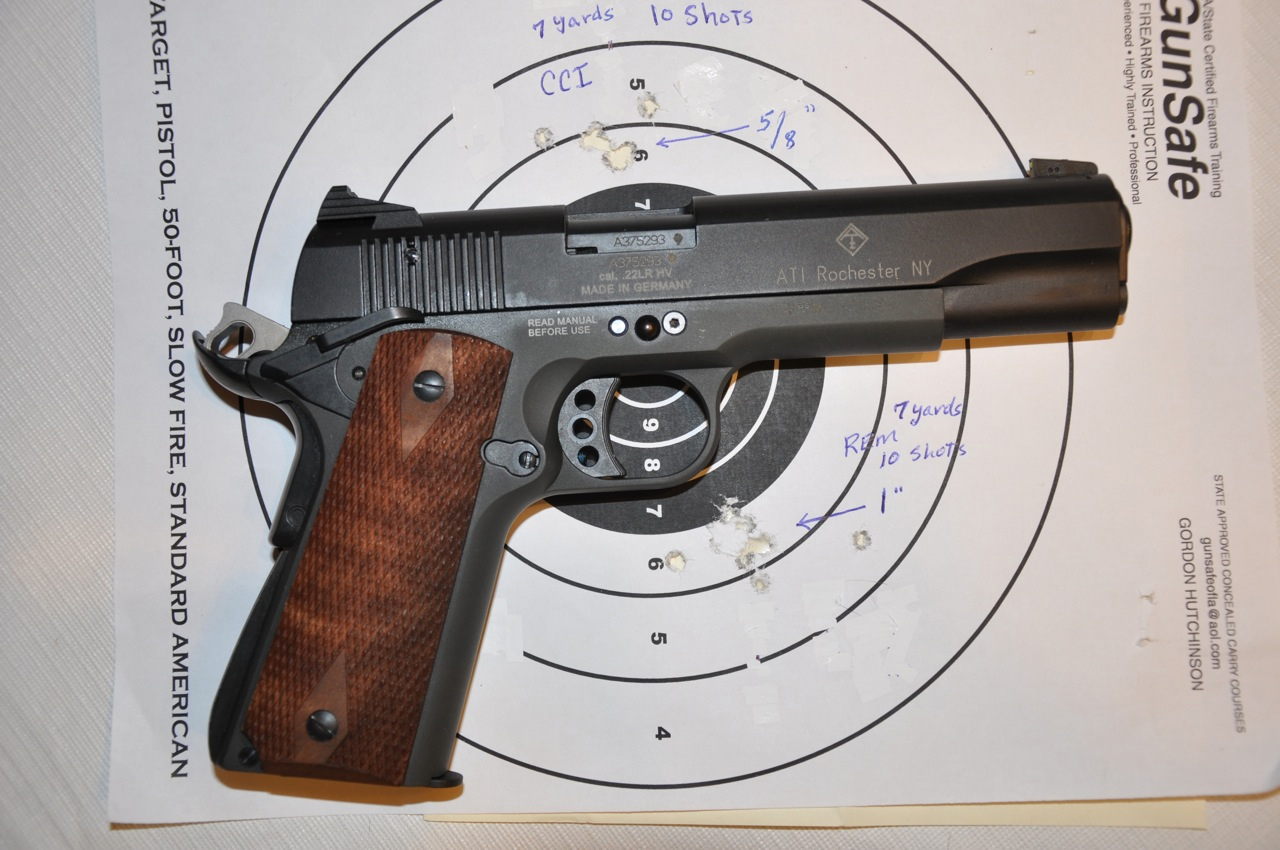 I found the gun attractive and comfortable to shoot, and get out of your mind this is a 1911 knock-off or copy — it is a 1911 in .22 caliber. A young lady student of mine tried the gun out and enjoyed it immensely. She is slight of build, and found the gun easy to shoot — in fact, she wanted to keep shooting it, but I had to end the session due to a previous engagement.