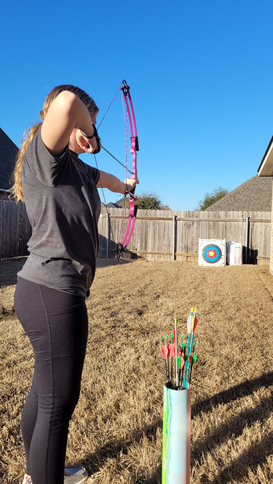 That explains why she continued competitive archery after her friend quit shooting.
