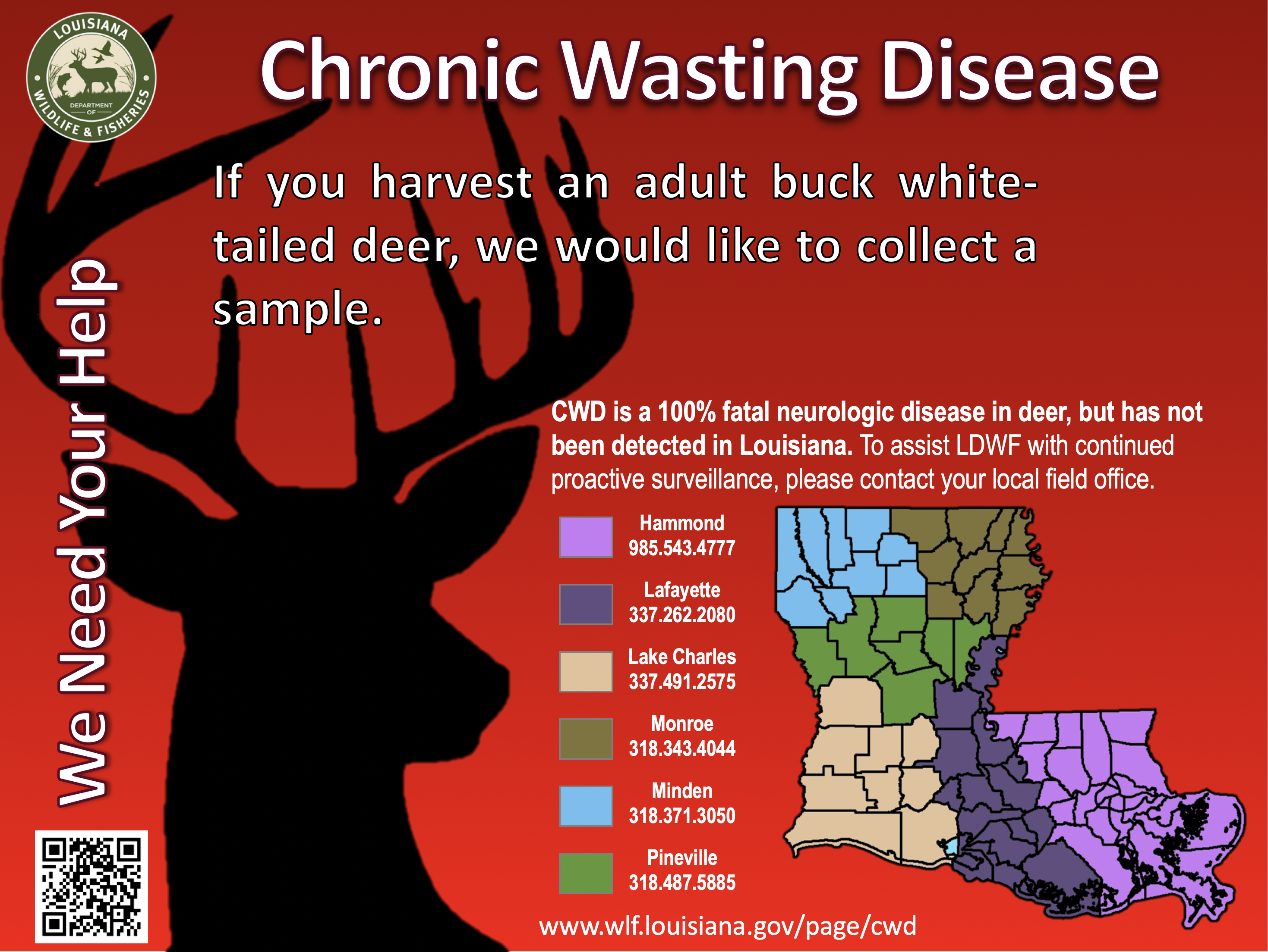 For more information on CWD, go to https://www.wlf.louisiana.gov/