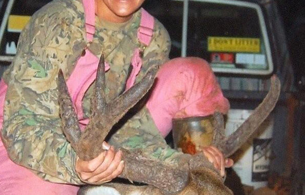 However, it was no ordinary doe; the weird deer sported a velvet covered 5-point rack with a 20-inch inside spread and unbelievable 9 ¼-inch bases.