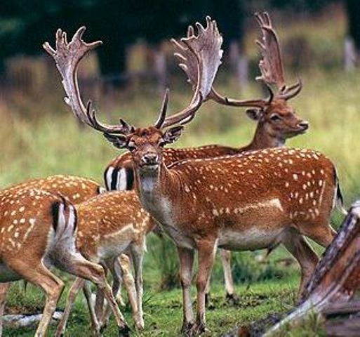 Fallow deer are Persian-European in origin and exhibit variations in hide coloration from white to spotted, similar to a whitetail fawn. The male Fallow’s antler formation is similar to a caribou.