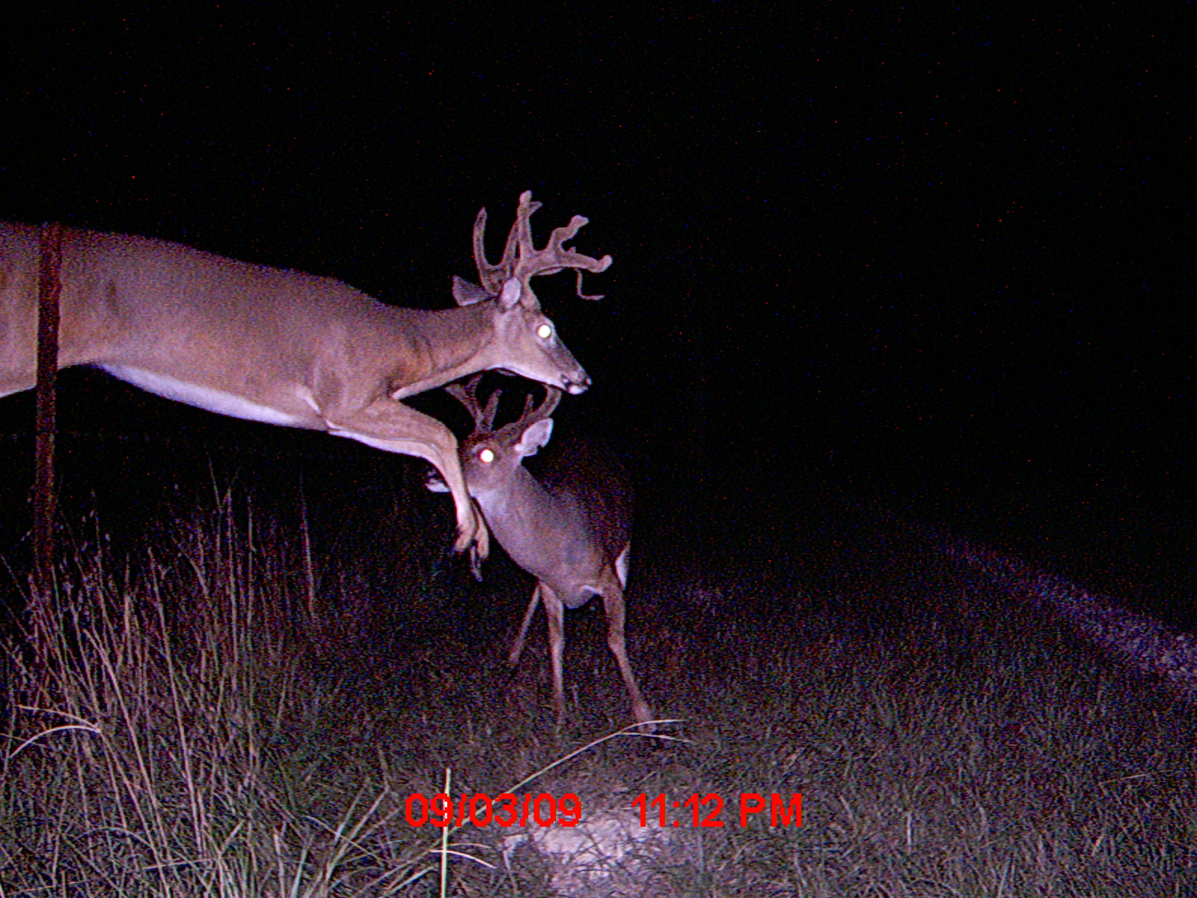 The voting was much closer in the Trail Cam Contest, but user Josh Harrell (or “Buckdown” as he’s known on the forum) managed the win with 50 percent of the total votes cast for his “Diving in the Pile” photo showing a big velvet buck leaping a fence to get to a pile of corn and rice bran.