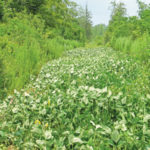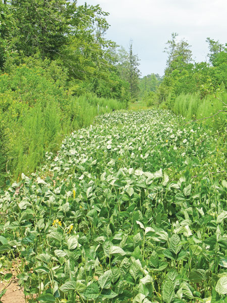 I also put in about a half acre of American jointvetch and alyce clover the same time I planted the peas. Both have been really slow to get established, but they are beginning to spread out and fill in the main lane in the Bat Cave and the 5,000-square-foot section of the main lane. Deer have already started nibbling the jointvetch, but I’ve seen no sign of browse on the alyce clover as of this writing.