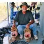 He quickly shot another large gator and took out the intestines.