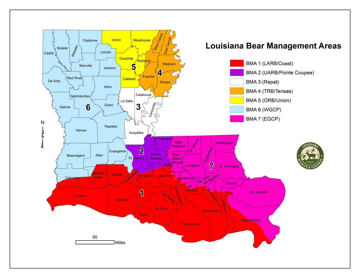Louisiana held its first black bear hunting season in more than 35 years in December of 2024 exclusively in Bear Management Area 4, located in northeast Louisiana. The second season in December of 2025 was held in areas 1, 2 and 4.