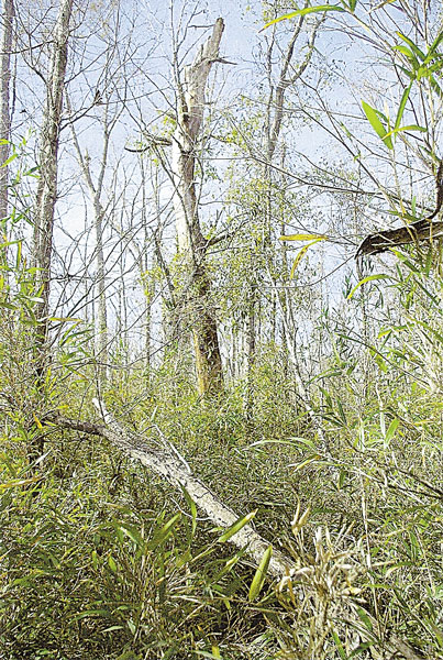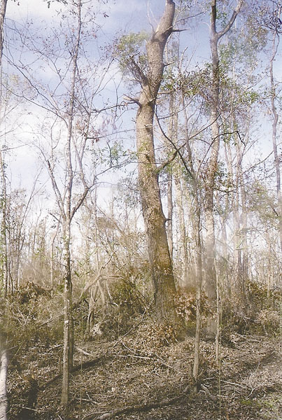 There was finally a mast crop on Pearl River last year, and this food source was attracting both deer and hogs. I set up on a fallen tree in an area where I had passed up a doe and fawn during the early primitive-season hunt. This area had abundant trumpet creeper browse, and I had watched these deer for about 20 minutes browsing around me.