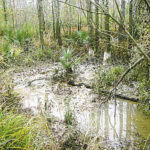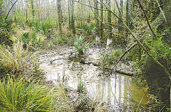 When slipping around, the wind direction is a critical factor to consider. Another is the condition of the forest floor. Dry leaves and lots of stem debris make for a noisy slip. If this is the situation, it is probably best to stay put and stand hunt. Hunting the edges of the sloughs or along the edge of the swamp forest will reduce the noise if you’re not sinking too deep in the mud.