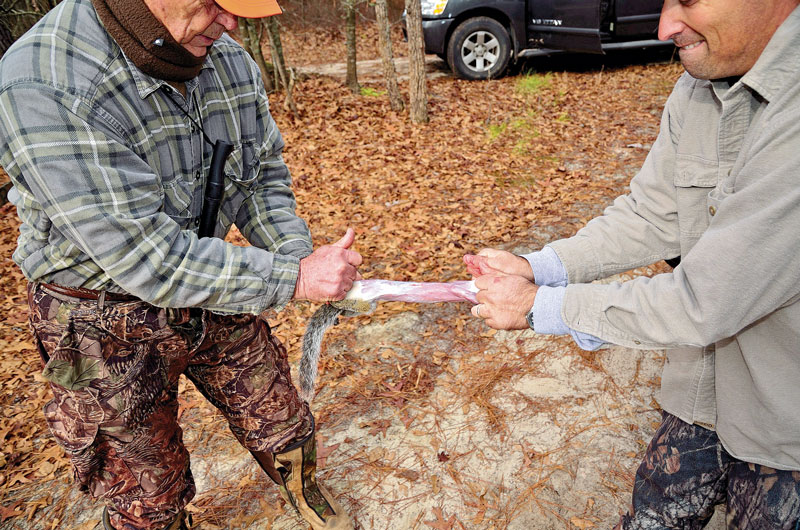 Once the dog trees, you can show him or her where the squirrel is, and either you or another one of the hunters can be ready to shoot at the same time the child does and yell out, “You’ve got him, Johnny!” or “Susie!” If the child looks up and says, “Yeah, but you shot him,” your answer is, “I was just finishing him off. That’s your squirrel.” The child will have a sense of accomplishment, he or she has learned gun safety, and he or she will be fired up about squirrel hunting.