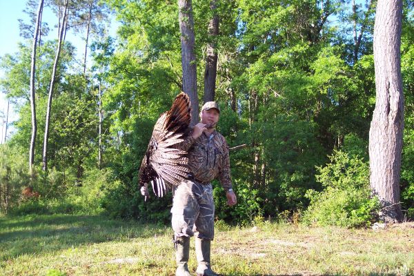 tom turkey G The author scored on this tom near Folsom, La., on 150 acres. The turkey had an 8-inch beard and weighed 18 pounds.