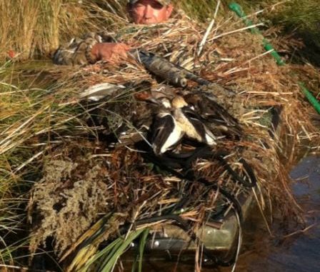 Though the odds are already in his favor being so low to the water, Johnny LaFleur goes to great lengths to ensure complete concealment of the boats.