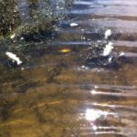 The reason the fish are dying appears to be that they simply were stranded by falling water.