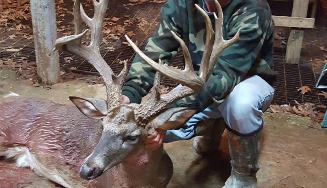 It’s a good thing, too — in the last days of the season, the 46-year-old Harvey hunter downed the buck of a lifetime when an 18-point appeared 40 yards from his pop-up blind.