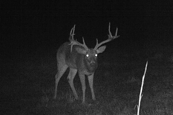 So Pleasant trekked for miles into the woods, eventually found some big rubs and saw a set of tracks that gave him hope that the big buck was still alive. He put out some corn and a camera in the area, and sure enough, the wily old deer was still alive and kicking.