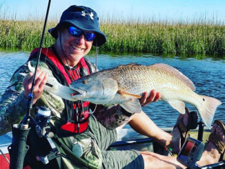 Thomas Byard with a nice redfish he caught while kayak fishing in the Calcasieu Lake marsh.