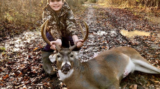 Lonnie Gibson’s grandson RayRay with his first buck taken in Winn Parish.