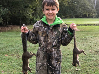 On his first squirrel hunt ever, Lane Maxwell killed these two squirrels with a .22 rifle while hunting in Morehouse Parish.